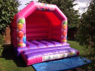 The "Pink Standard" bouncy castle is one of three standard options available- we also hold this in Blue or Generic.