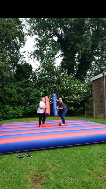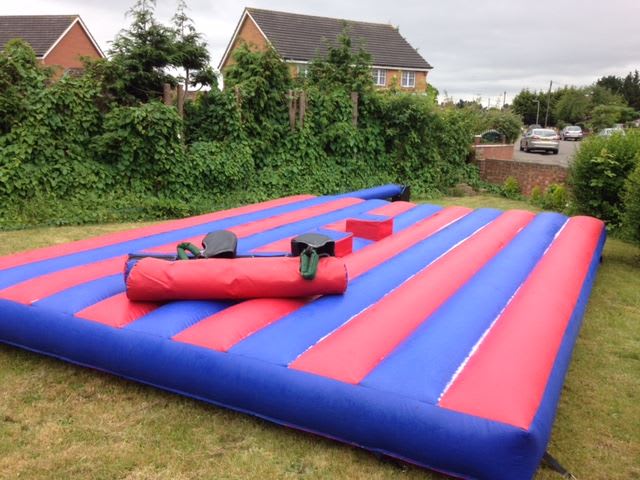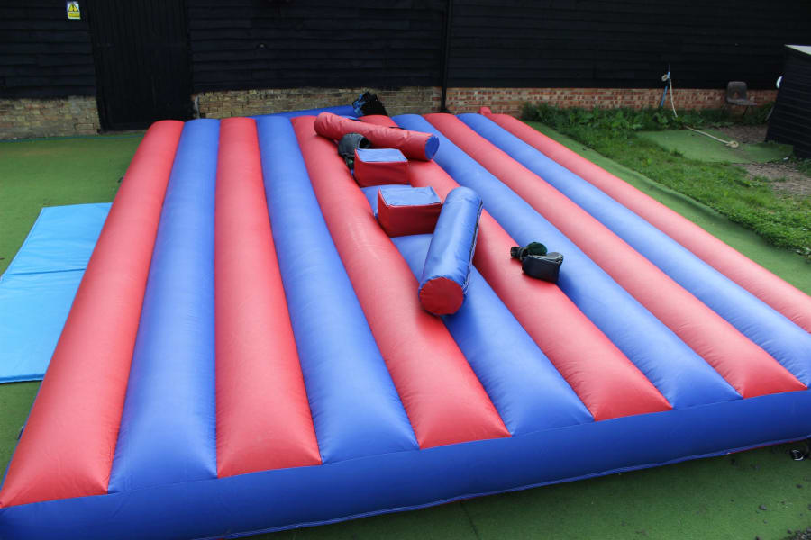 Pair up with someone of a similar build and stand on one of the podiums, with a helmet on use the cushioned poles to push your opponent off! Who will reign champion?!